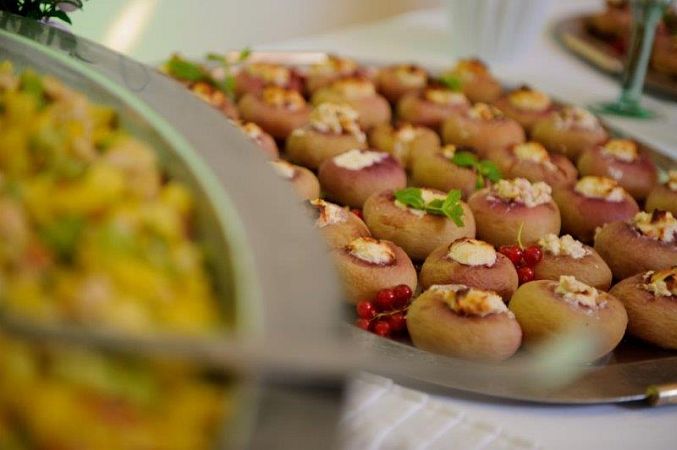 Möchte man auf die Vielfalt eines Spezialitätenbuffets nicht verzichten obwohl es keine Sitzgelegenheiten gibt, dann ist ein Stehbankett das richtige.